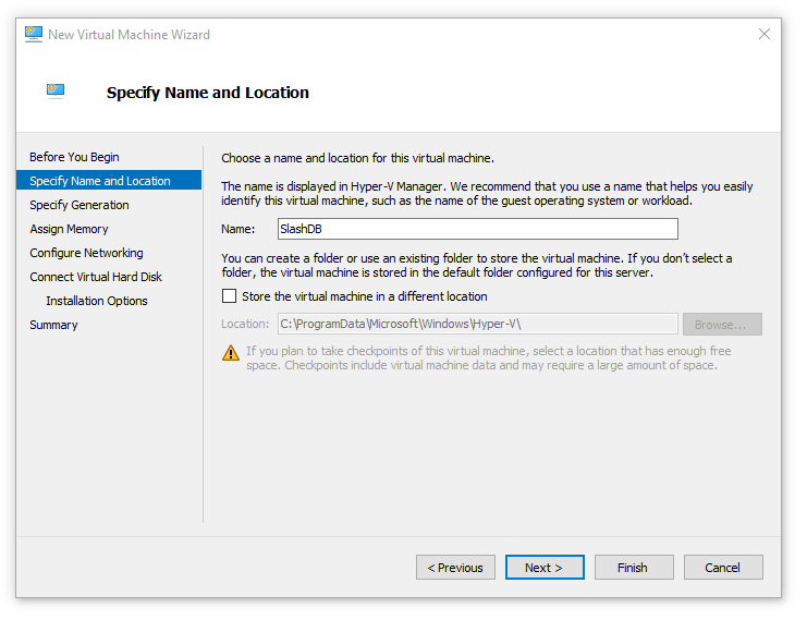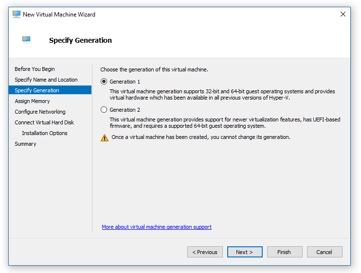 Choose Generation 1 virtual machine