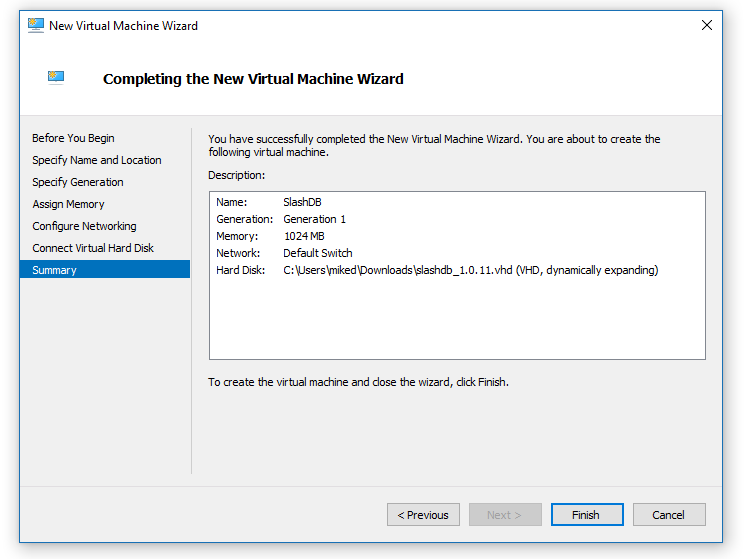 SlashDB can be run in Hyper-V virtual machine. It is shipped fully configured as a VHD disk that can be attached to virtual machine.
