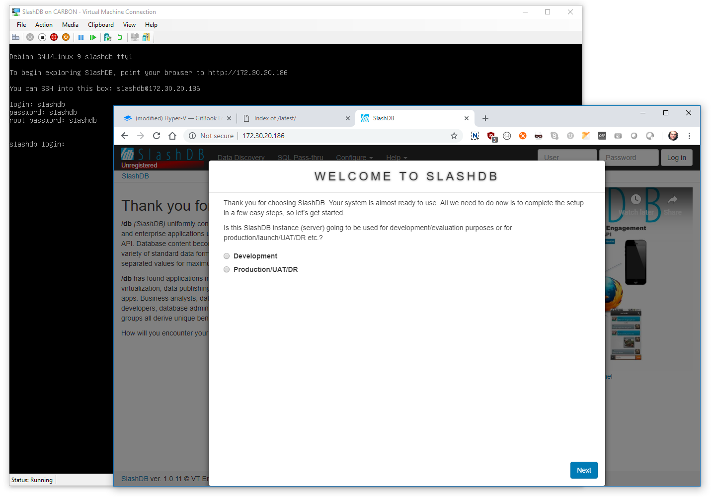 Point your browser to that IP address to start using SlashDB, also have a look at Logging in for the first time instructions.